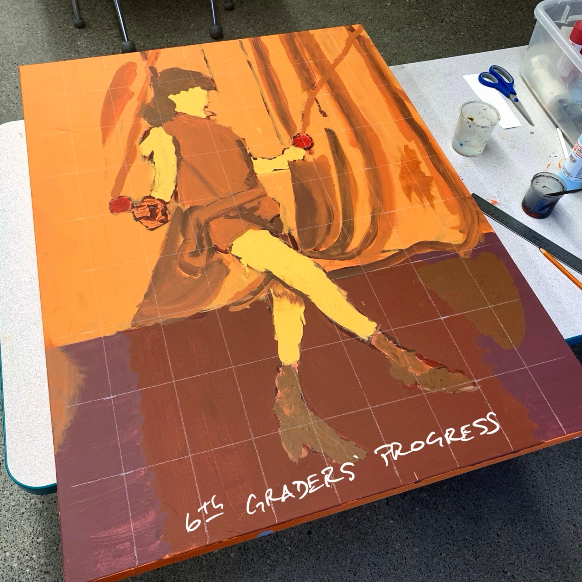 For one of the projects I did with the kids, which is what I'd done with the kids when I covered for a few months in 2022, I ordered a 30”x40” large canvas for each grade to paint til the end of the year. In each class, I’d have a group of 4-5 work on the large painting while the rest works on something else. I went over some of the famous artists, and I chose a painting from various artists for each grade to paint. The artists I picked for each grade were K-Piet Mondrian, 1st-Edvard Munch, 2nd-Frida Kahlo, 3rd-Mary Cassatt, 4th-Paul Gauguin, 5th-Andy Warhol, and 6th-James McNeill Whistler.